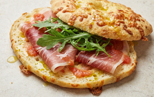 De jamón serrano y rúcula.